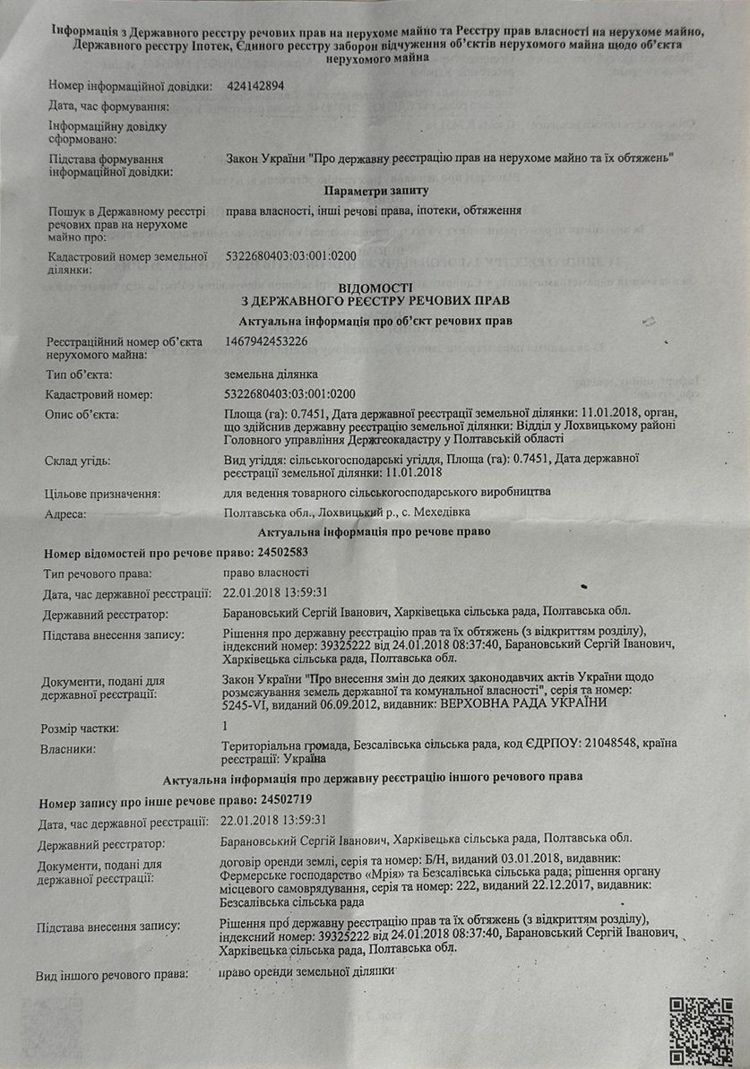 Заявник прямо вказує на можливу причетну структуру – ТОВ “Агроленд-інвест”, співвласником якої є Ю.Ус. На думку заявника, саме ця структура протиправно зорала “нічийну” ділянку, засіяла її та зібрала врожай. І навряд чи сплатила податки Державі та громаді. Що в умовах воєнного стану нагадує слово “мародерство”.