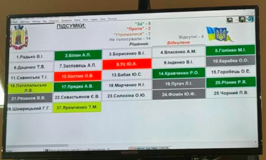 - Голосування за офіційний статус Червоно-чорного прапора біля мерії, щоб висів поруч з прапором державним (жовто-блакитним). Результат і тут прогнозований – потрібної більшості немає: